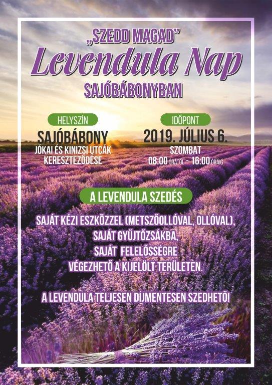Szeretettel hívunk és várunk 2019. július 6-án (szombaton), az első sajóbábonyi levendulaszüretre.