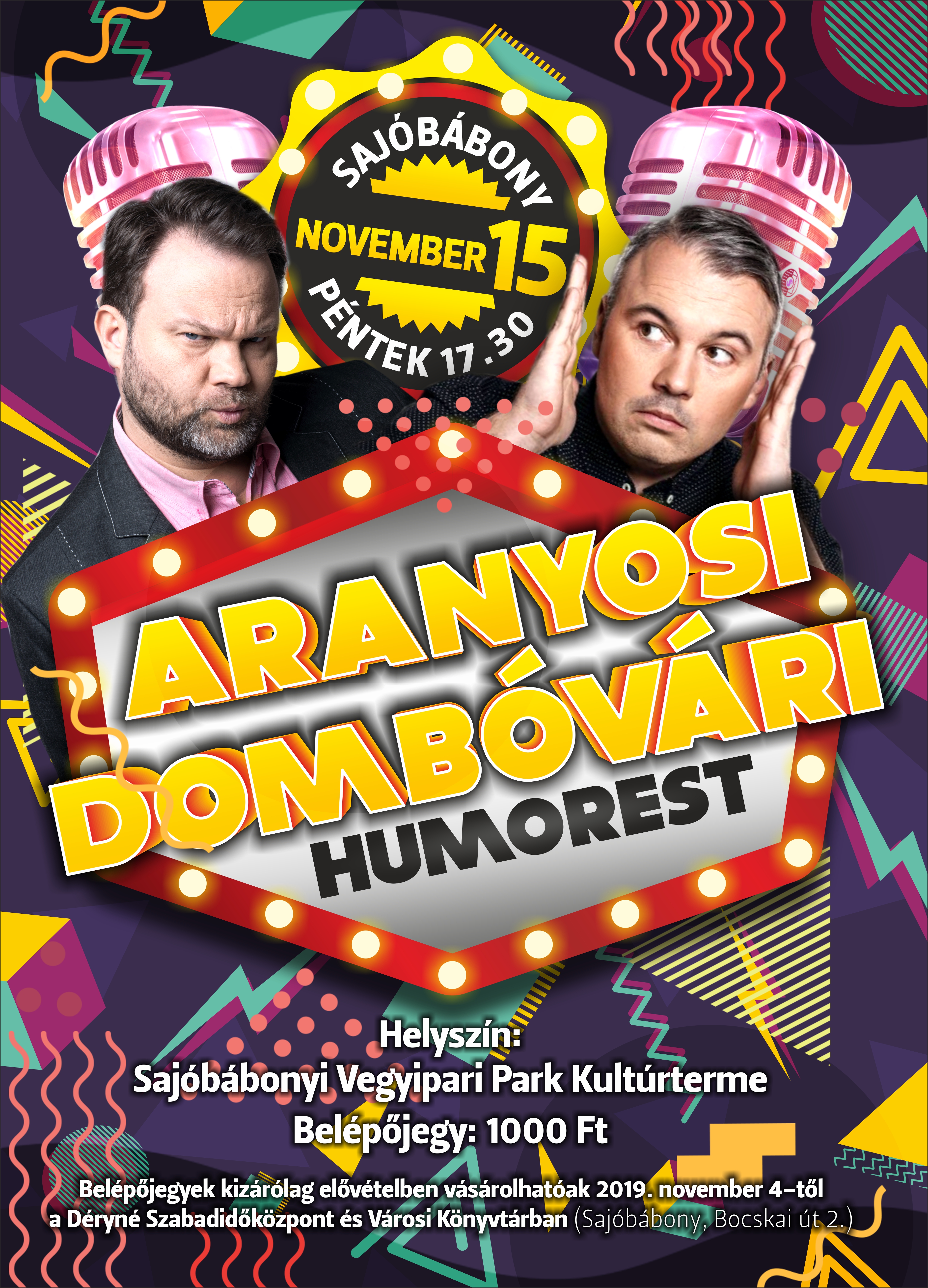 Posted inDSZKVK Lakossági HUMOREST 2019-10-31 2019. november 15-én Humorestet szervezünk, Aranyosi Péter és Dombóvári István közreműködésével. Belépőjegyek elővételben vásárolhatóak a Déryné Szabadidőközpont és Városi Könyvtárban.