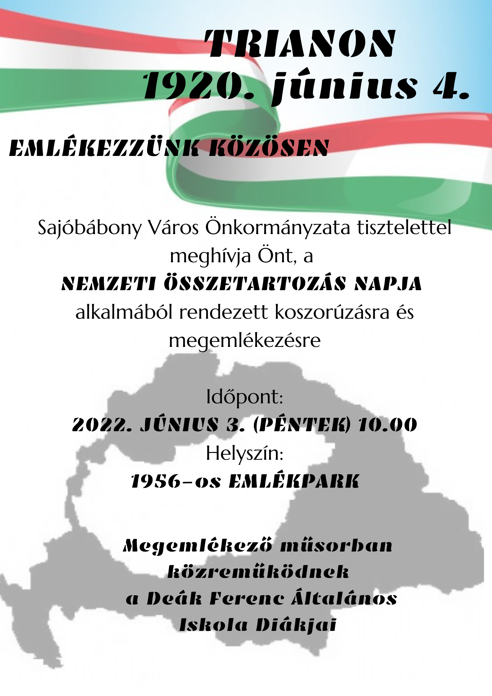 Tisztelettel várjuk Sajóbábony város lakosságát megemlékezésünkre!