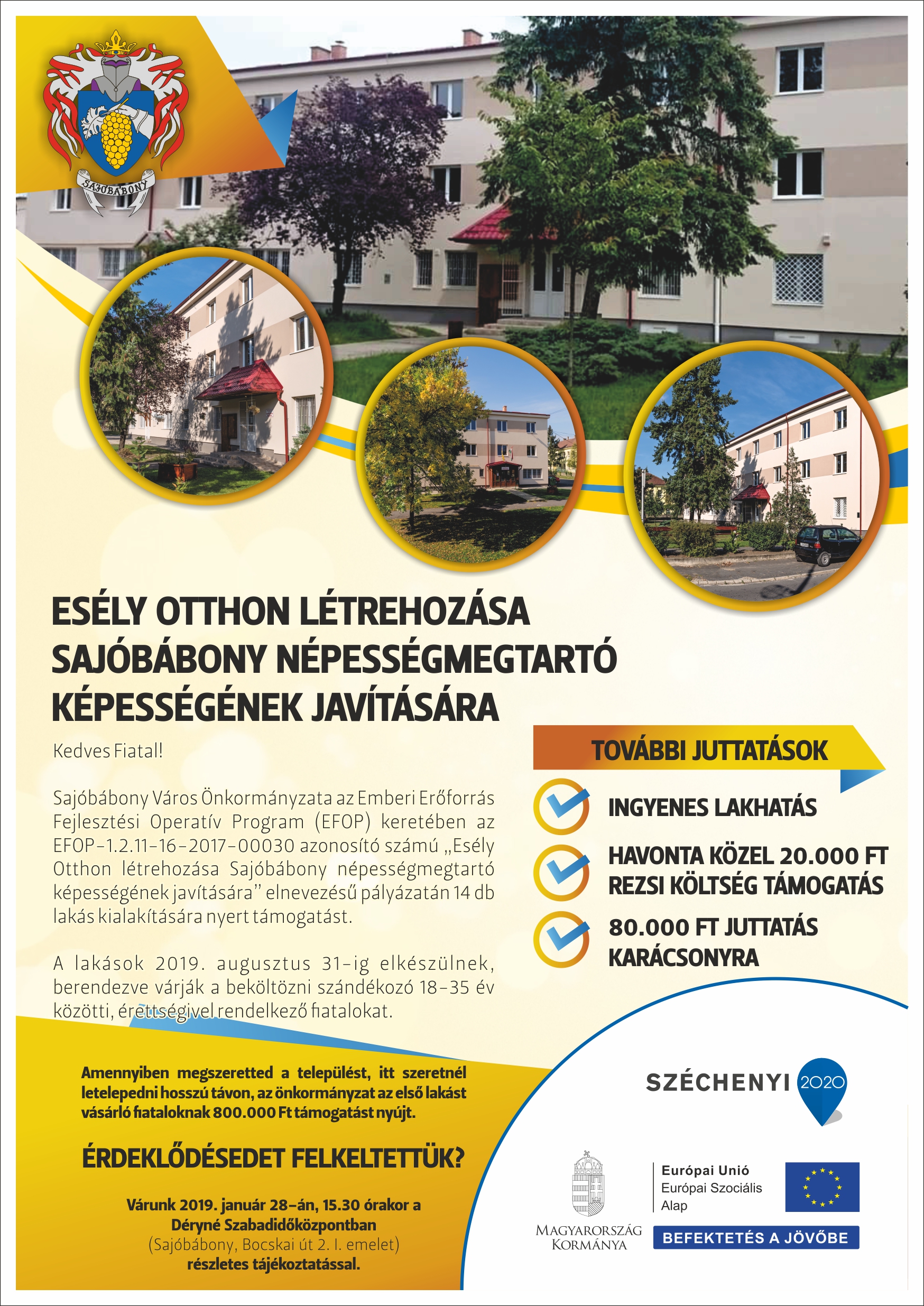 Posted inLakossági Önkormányzat Esély Otthon létrehozása Sajóbábony népességmegtartó képességének javítására – Tájékoztató nap 2019-01-23