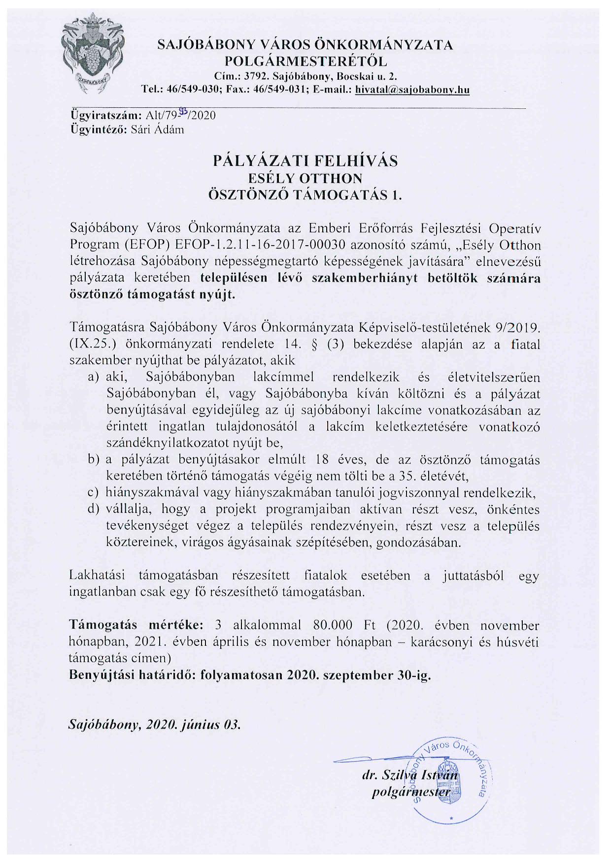 Esély Otthon – pályázati felhívás – ösztönző támogatás