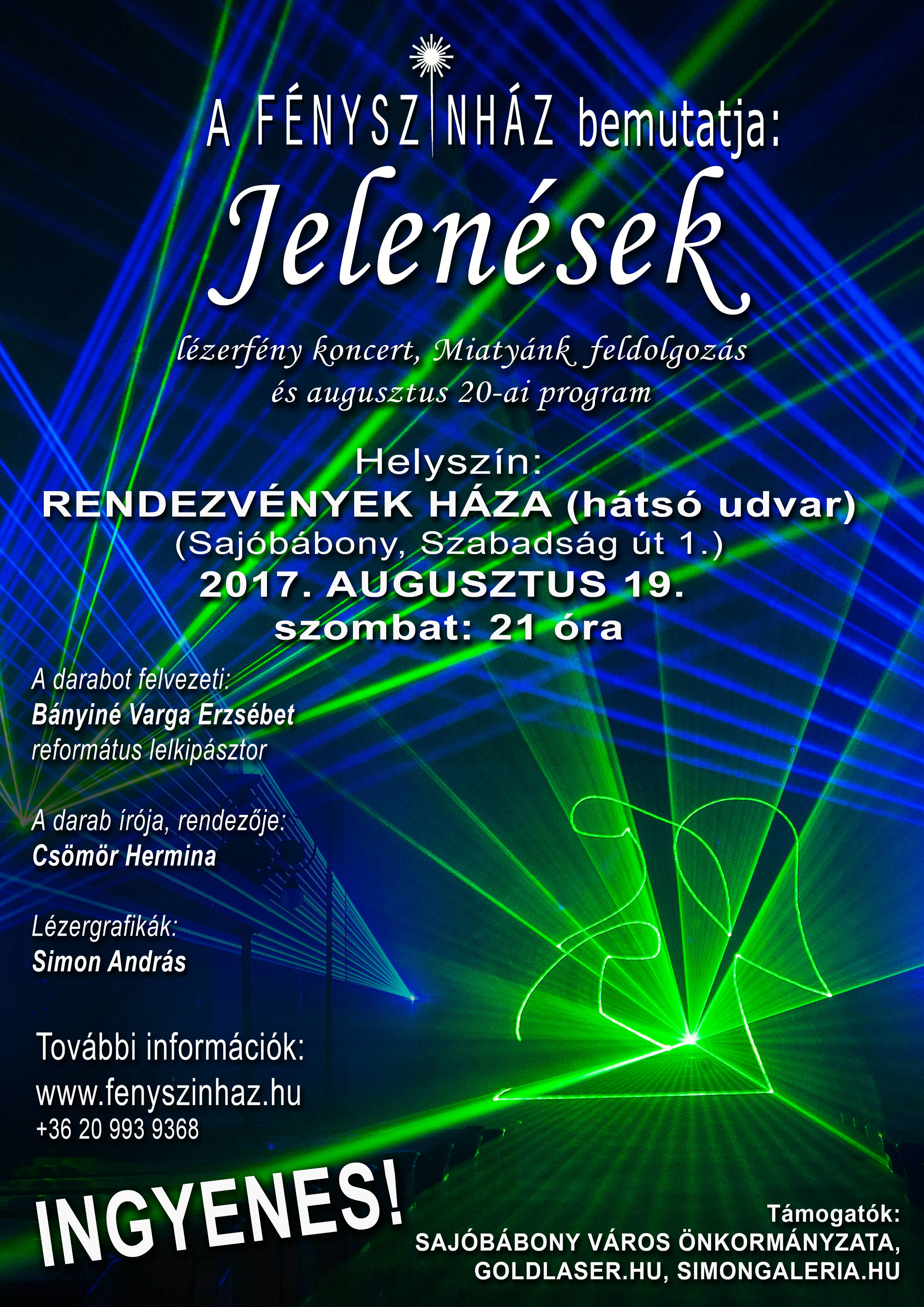 Posted inDSZKVK Egyéb Lakossági FÉNYSZÍNHÁZ 2017-08-10 Jelenések lézerfény koncert, Miatyánk feldolgozás és augusztus 20-ai program lesz 2017.augusztus 19-én (szombaton) 21.00 órától a Rendezvények Háza hátsó udvarán. Minden érdeklődőt tisztelettel hívunk és várunk.
