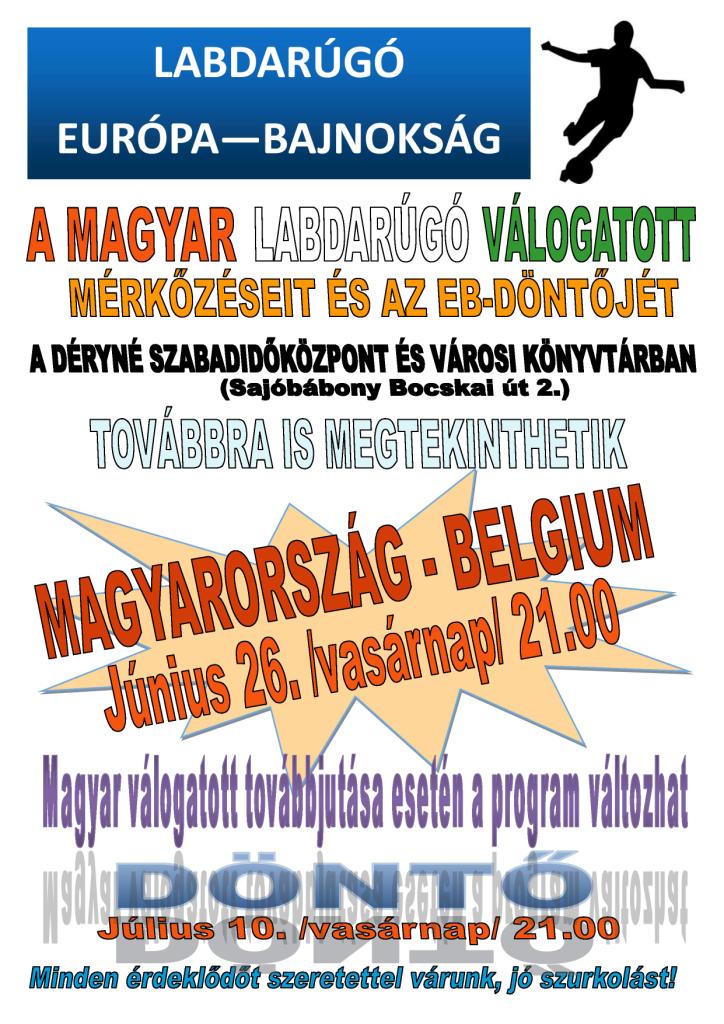A Déryné Szabadidőközpont és Városi Könyvtárban a magyar csapat minden további EB mérkőzése ingyenesen megtekinthető projektoros kivetítőn.