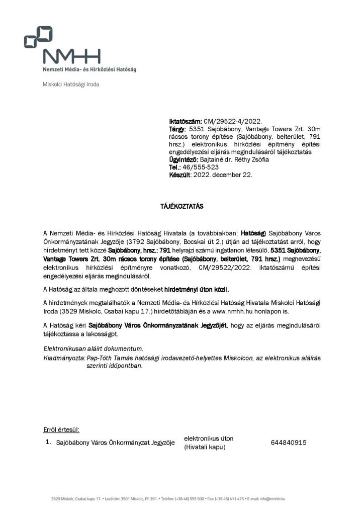 Hatósági hirdetmény