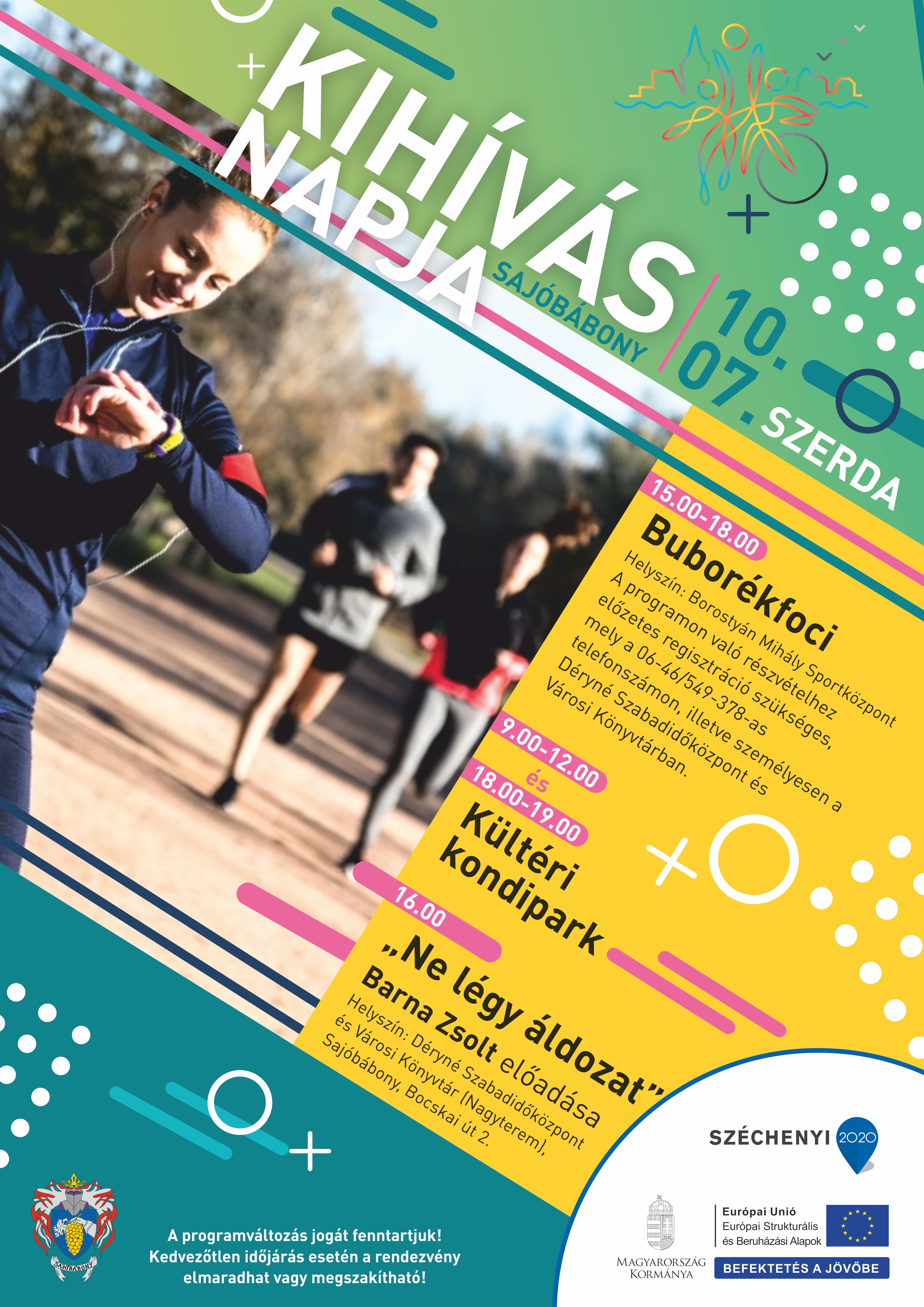 2020. október 07-én Kihívás Napi sportrendezvény lesz városunkban.  Bővebb információ az alábbi plakáton!