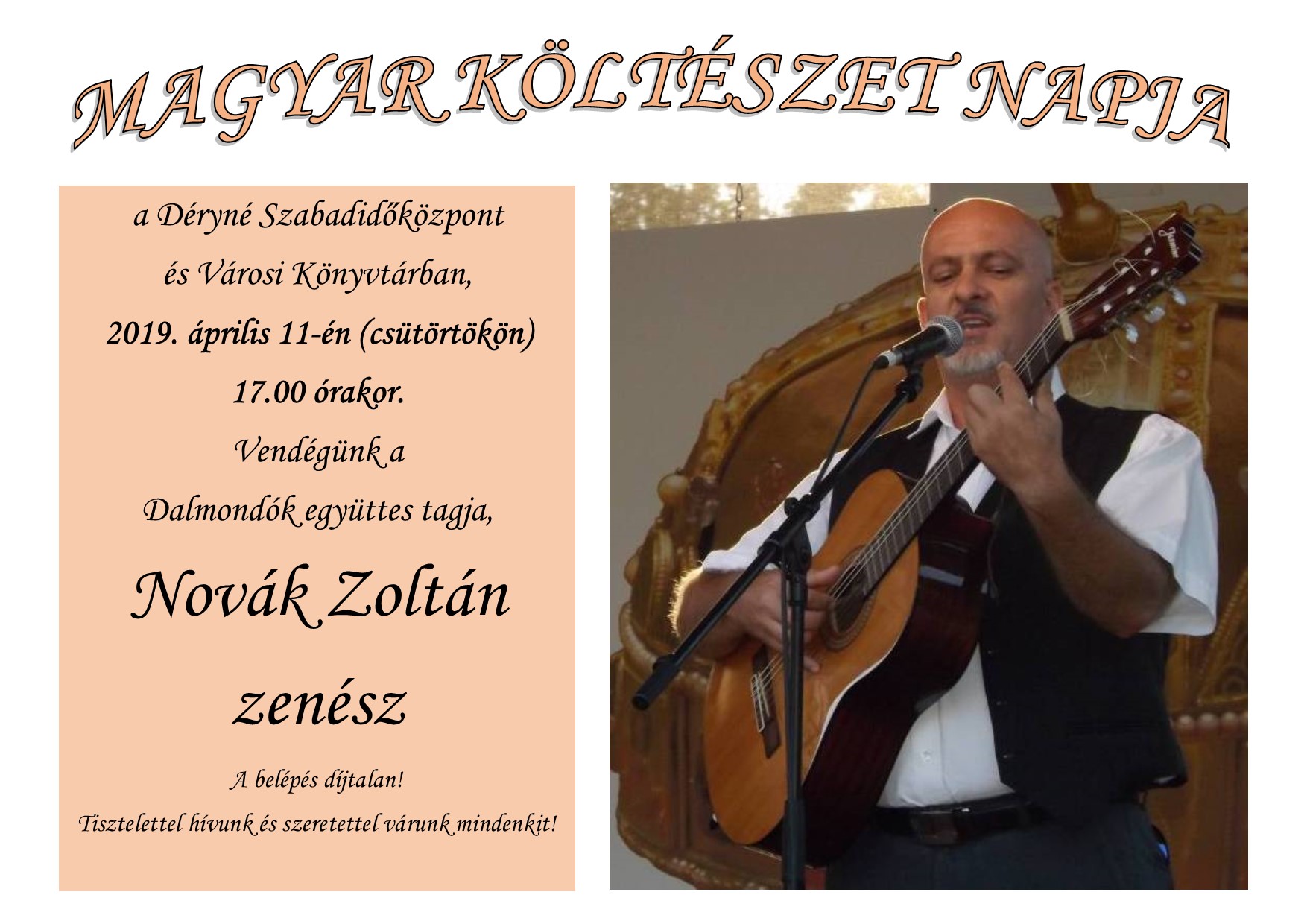 Posted inDSZKVK Lakossági Költészet Napja 2019-04-05 2019.04.11-én a Költészet Napján Novák Zoltán zenész előadását tekinthetik meg az érdeklődők, a Déryné Szabadidőközpontban. Mindenkit tisztelettel hívunk és várunk!