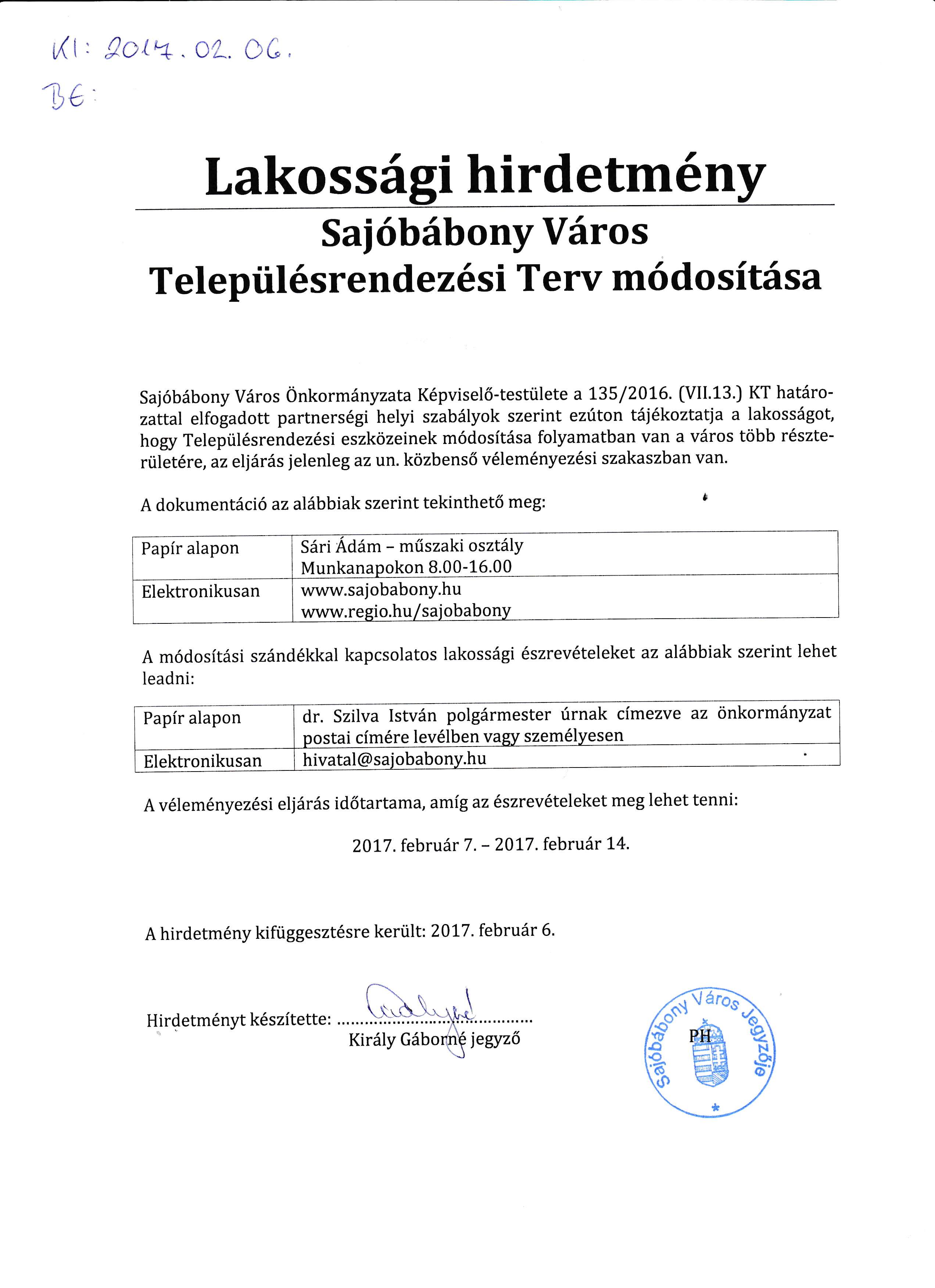 Sajóbábony Város Önkormányzata Sajóbábony Város Önkormányzata