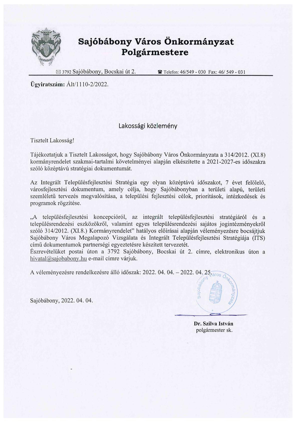 Posted inLakossági Önkormányzat Lakossági közlemény-Integrált Településfejlesztési Stratégia 2022-04-04 Az Integrált Településfejlesztési Stratégia megtekinthető itt: