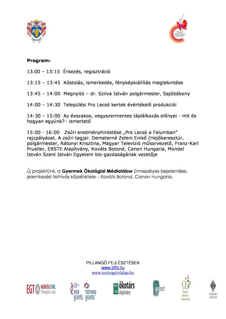Posted inDSZKVK Egyéb Lakossági Meghívó 2015-12-02 Pro Lecsó a falumban. A „Hejő – Sajó” települések bemutatkozása, kóstoló és rajzverseny eredményhirdetés rendezványre tisztelettel várjuk az érdeklődőket.