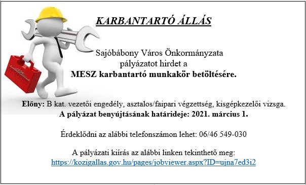 Pályázati felhívás – karbantartó