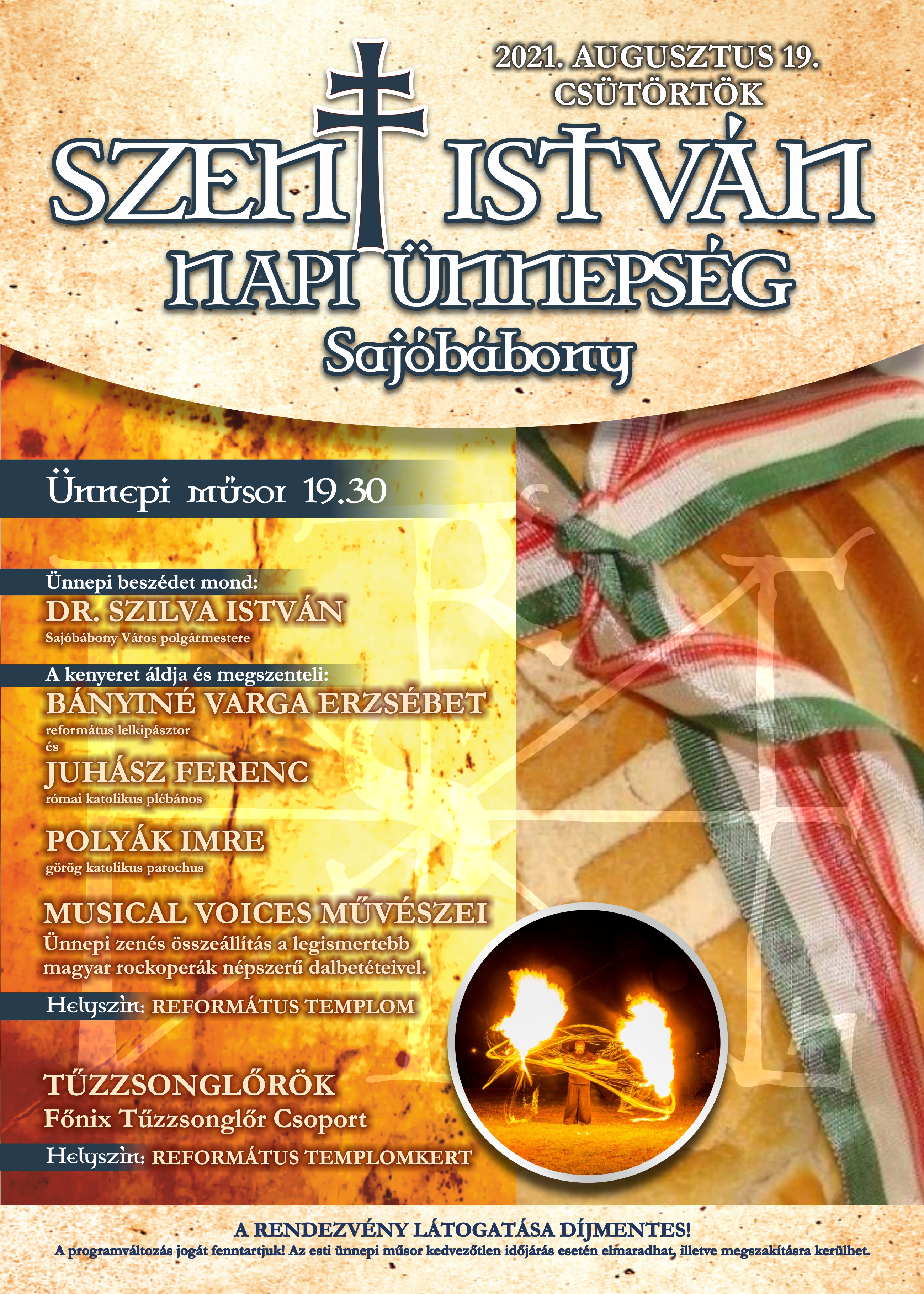 Posted inDSZKVK Lakossági SZENT ISTVÁN NAPI ÜNNEPSÉG 2021-08-09 Tisztelettel hívunk mindenen kedves érdeklődőt 2021. augusztus 19-én (csütörtök) 19.30-tól hagyományőrző kenyérszentelésre és ünnepi műsorra. Bővebb információ az alábbi plakáton:
