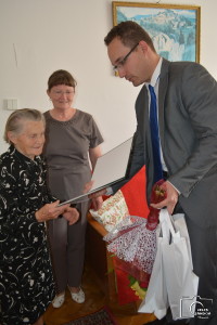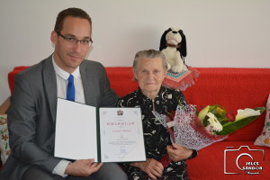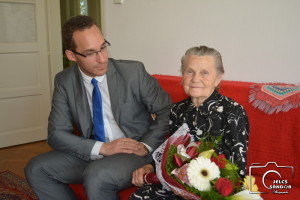 Városunk polgármestere – a személyes megbecsülés és az idősek iránt érzett tisztelet és hála jeleként – Orbán Viktor miniszterelnök köszöntő emléklapját egy csokor virág és az önkormányzat szerény ajándékának kíséretében adta át az ünnepeltnek, akit 1925. május 12-én segített a világra Sajóbábonyban a bába. Piroska néni azóta a településen él.