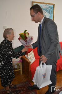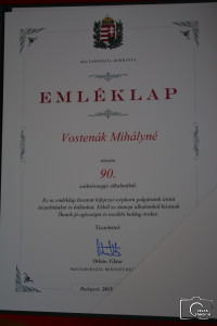 Vostenák Mihálynét 90. születésnapja alkalmából, Sajóbábony Önkormányzata nevében otthonában köszöntötte dr. Szilva István polgármester és Jelcs Sándor képviselő.