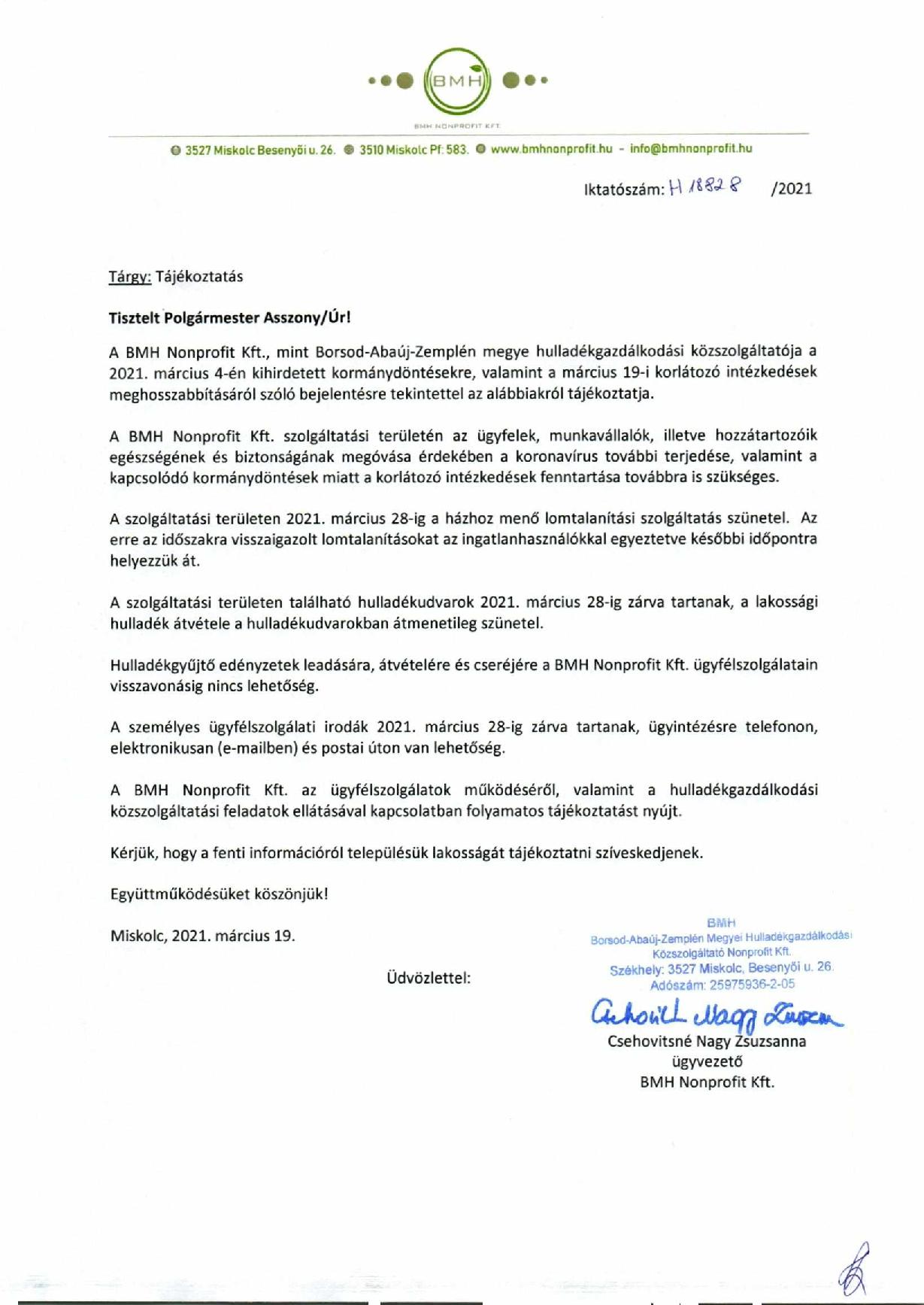 Tájékoztatás – BMH
