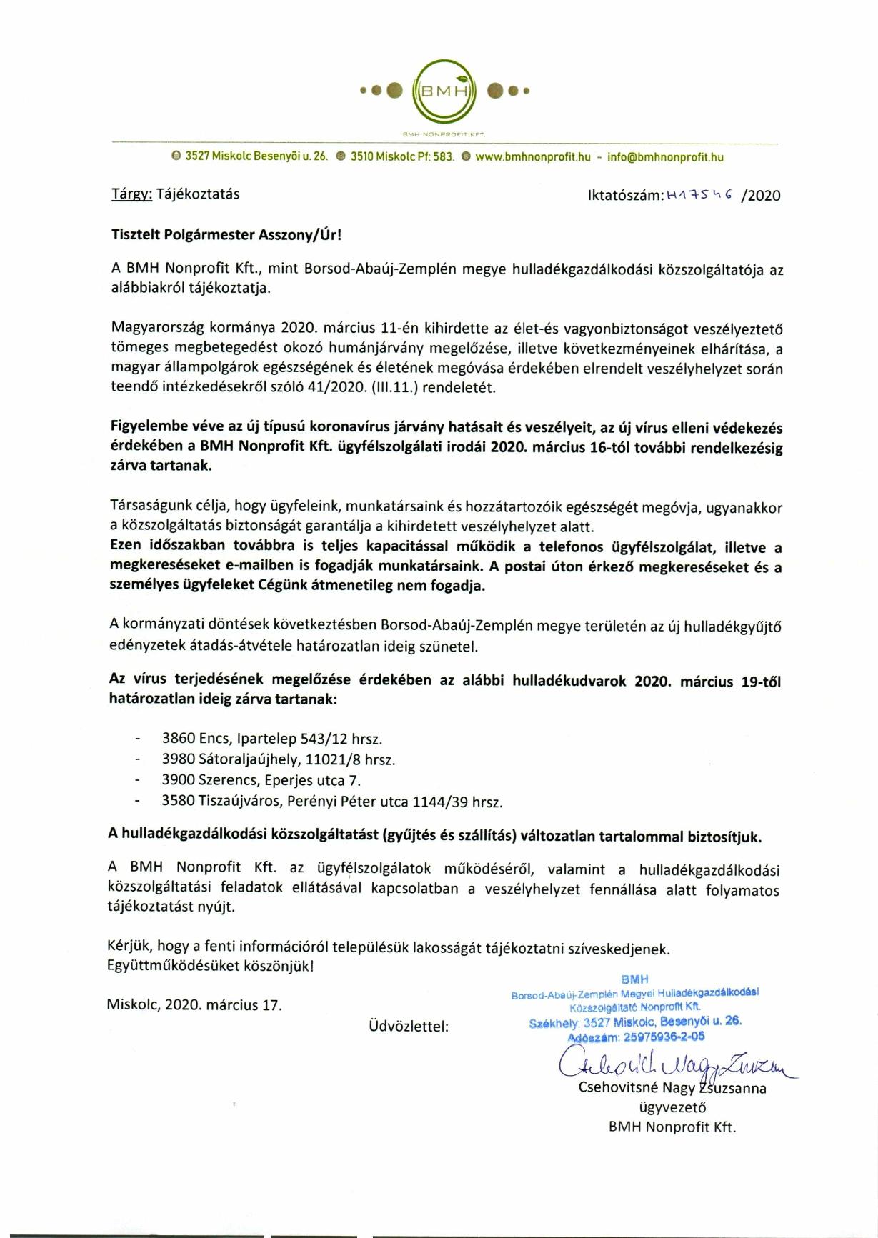 • Tájékoztatás – BMH Nonprpfit Kft.