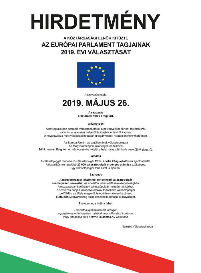 MAGYARORSZÁG KÖZTÁRSASÁGI ELNÖKE 2019. MÁJUS 26. NAPJÁRA TŰZTE KI AZ EURÓPAI PARLAMENT TAGJAINAK 2019. ÉVI VÁLASZTÁSÁT
