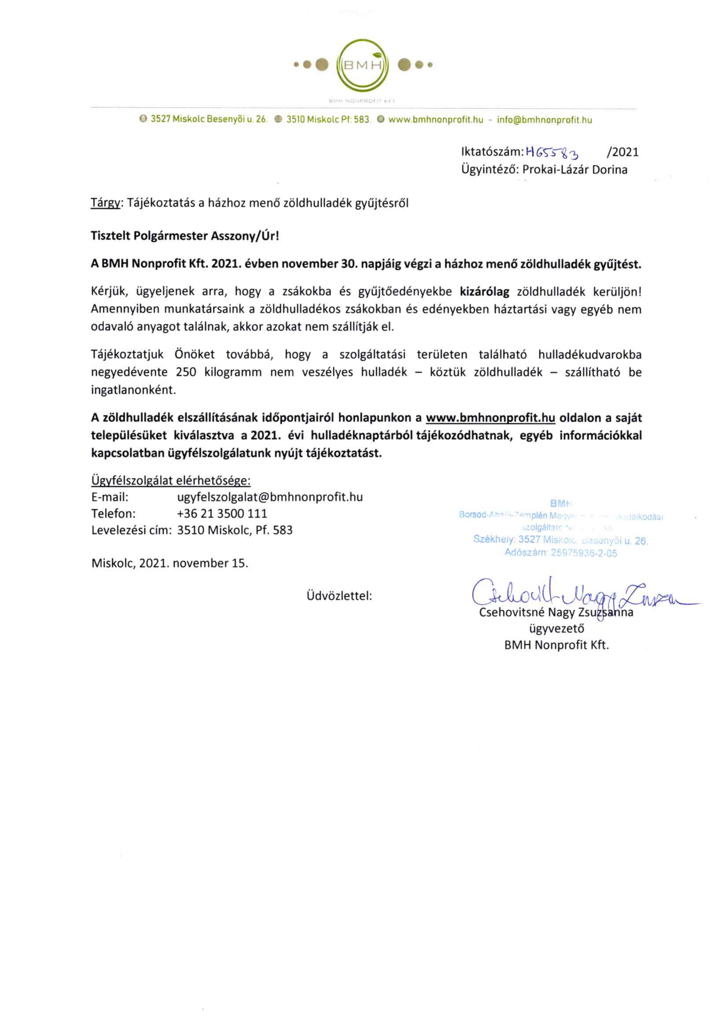 Tájékoztatás – a házhoz menő zöld hulladék gyűjtésről