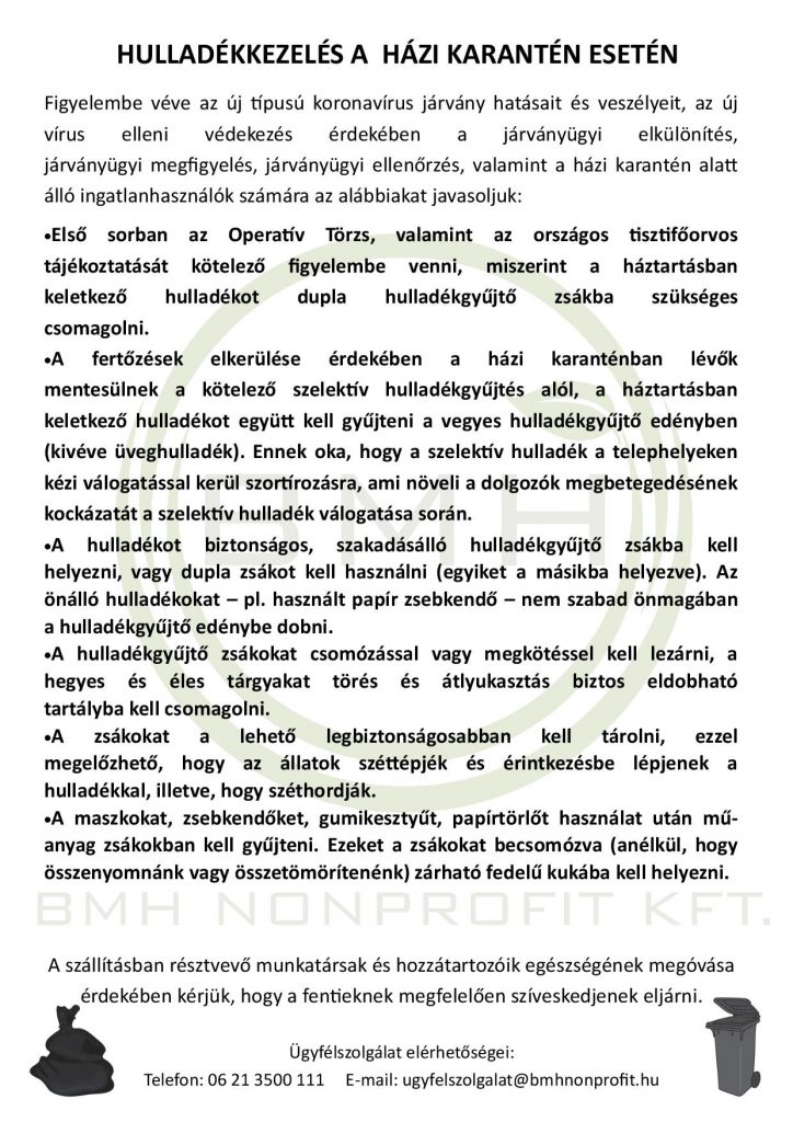 Tájékoztatás – hulladékkezelés a házi karantén esetén
