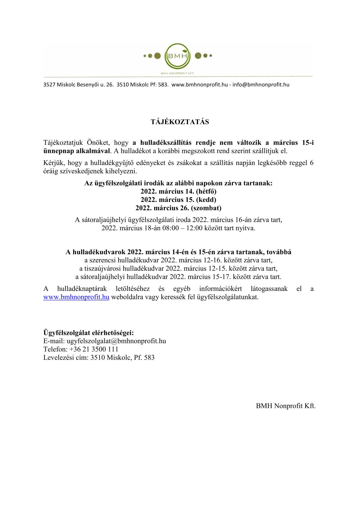 Tájékoztatás-Hulladékszállítás