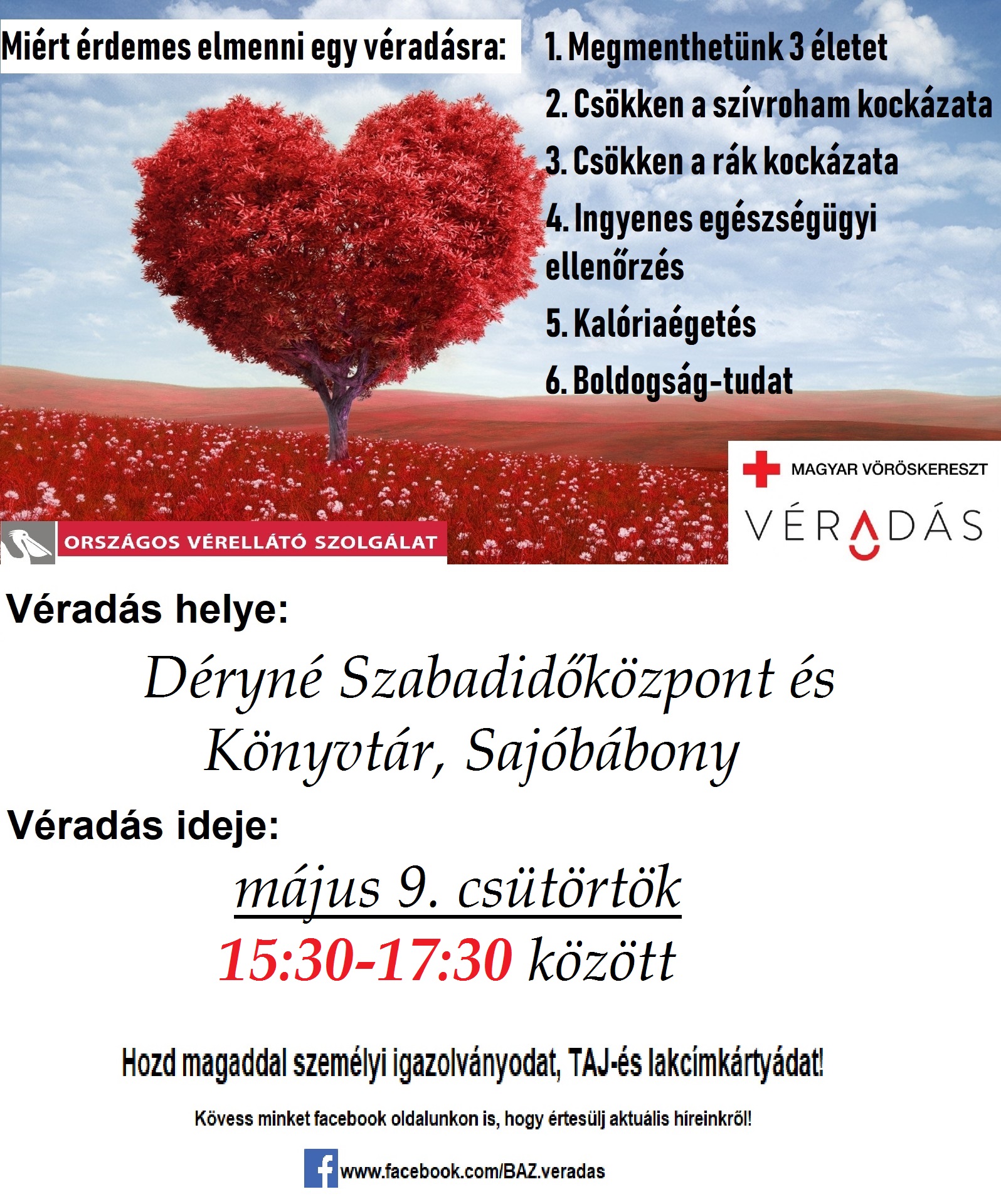 Posted inDSZKVK Lakossági VÉRADÁS 2019-04-30 Véradásra várjuk a tisztelt lakosságot, 2019. május 09-én (csütörtök) a Déryné Szabadidőközpontba.