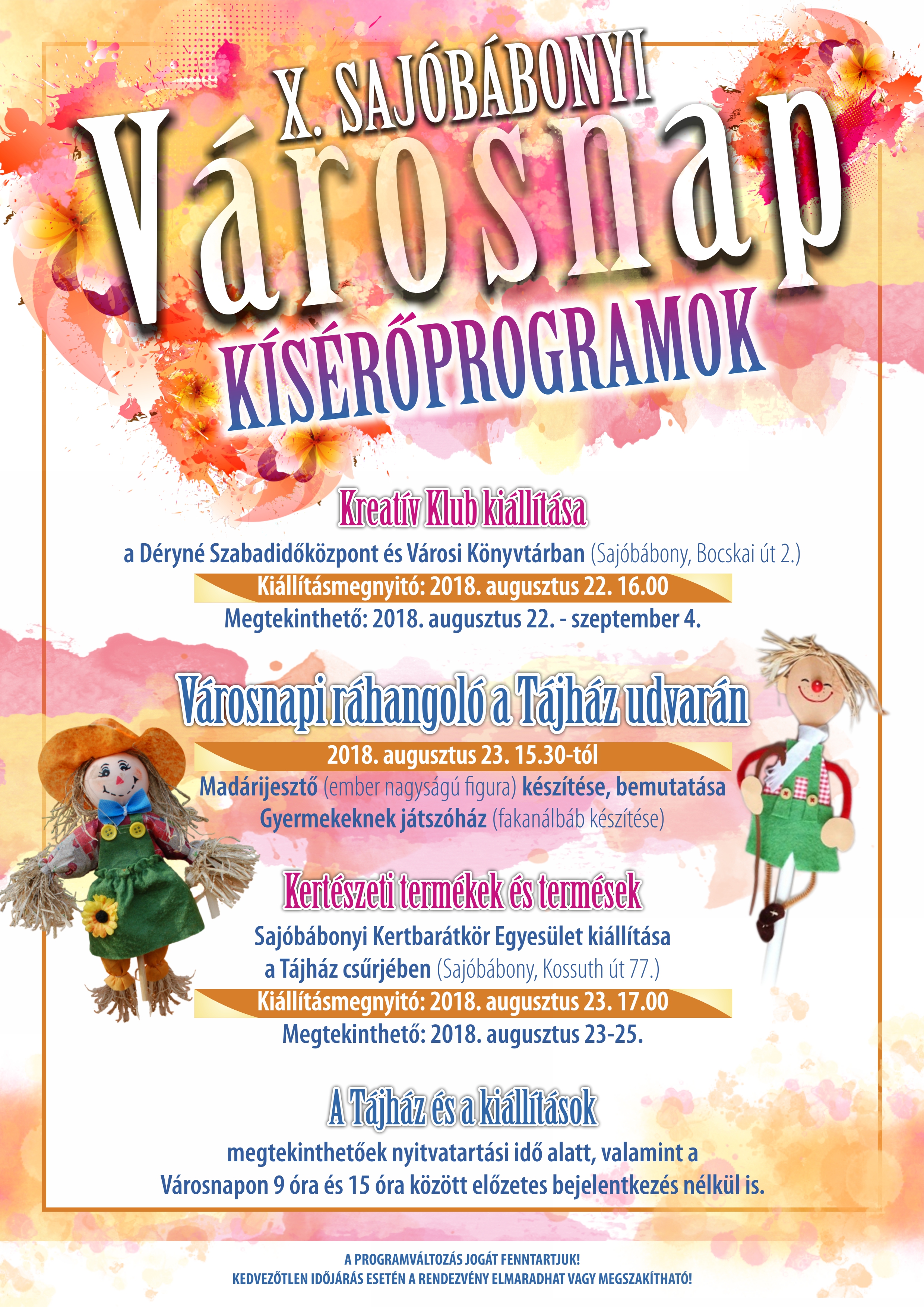 Bővebb információ az alábbi plakátokon! Illetve a rendezvénnyel kapcsolatosan érdeklődni lehet személyesen a Déryné Szabadidőközpontban ( Sajóbábony, Bocskai út 2.) és a 06-46/549-378 telefonszámon.
